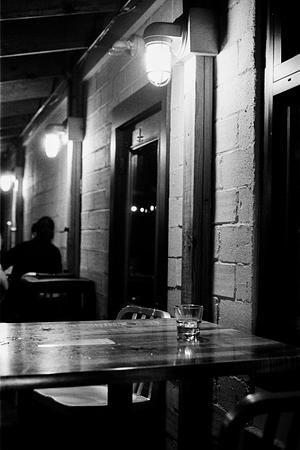lonely cocktail glass. shot on Kodak TMax 3200.